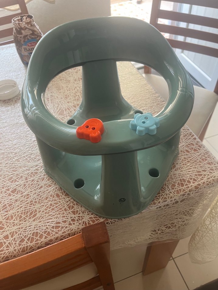 Gri renkli, plastik bebek mama sandalyesi olup ön kısmında iki renkli oyuncak bulunur. Beslenme için güvenli ve konforludur.