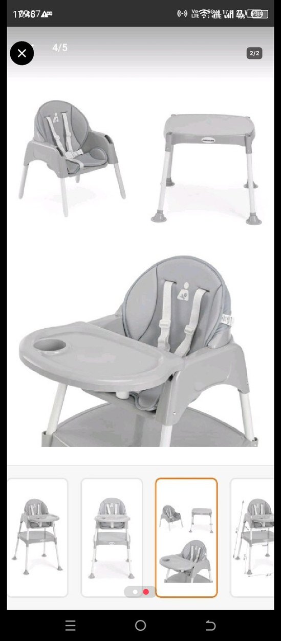 Gri renkli bebek mama sandalyesi, emniyet kemeri, çıkarılabilir tepsi ve sağlam yapıya sahiptir. Temizlemesi kolaydır ve konfor sağlar. ️