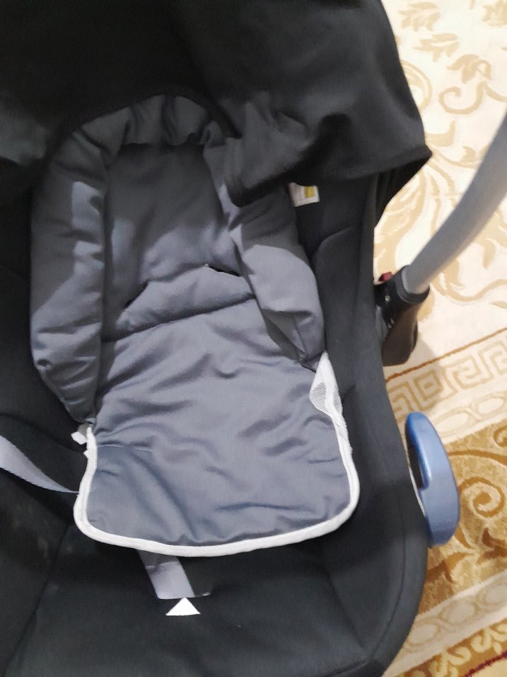 Gri renkli, yastıklı iç kısıma ve ayarlanabilir tutacağa sahip bebek oto koltuğu. Bebeklerin güvenli ve konforlu seyahati için uygundur.