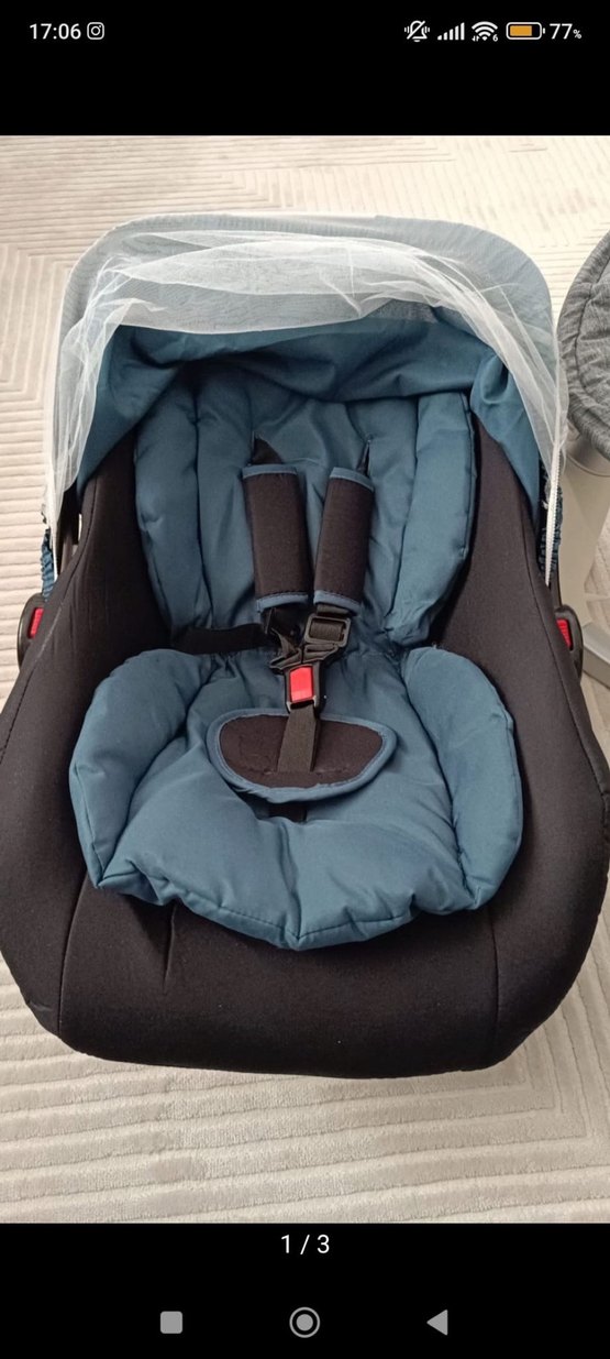 Gri bebek yenidoğan puseti, ayarlanabilir emniyet kemerleri ve taşımayı kolaylaştıran sağlam sap içerir. Seyahat sırasında konfor ve güvenlik sağlar.