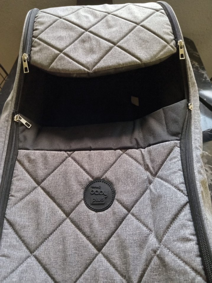 Gri renkte, kapaklı ve fermuarlı, kapitone dokulu bebek puseti. Bebeğiniz için konfor ve koruma sağlar.