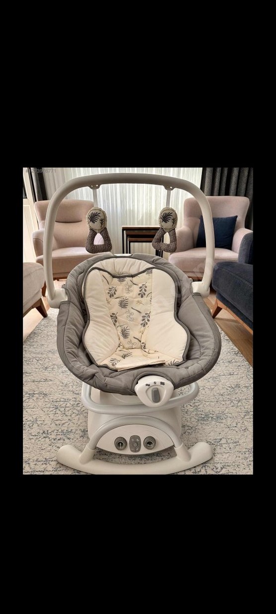 Gri renkli, yaprak desenli yumuşak oturma alanına sahip bebek salıncağı. Oyuncak çubuğu ve sağlam beyaz tabanı ile bebekler için uygundur. muzikli ve titresimli ana kucagu az kullanilmistir bebegim sevmedigi icin satisa koydum. calisir durumda iade kabul k etmiyorim. kendi kutusu icersinde yollanacaktir