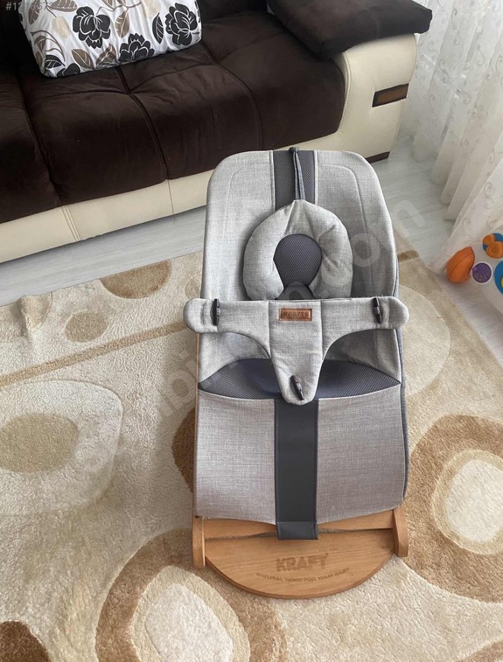 Yumuşak kumaştan yapılmış gri bebek taşıma askısı, rahat ve güvenli taşıma sağlar. Destekleyici kayışlar ve yastıklı baş desteği bulunur.
