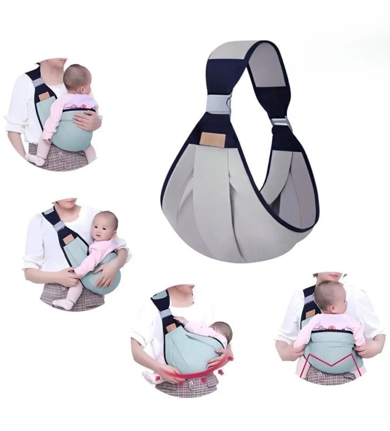 Ayarlanabilir askılı gri bebek taşıma askısı, yenidoğan ve bebekler için rahat kullanım sağlar. Eller serbest destek sunar.