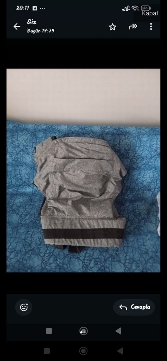 Yumuşak ve nefes alabilen kumaştan yapılmış gri bebek taşıma askısı, bebeğinizi rahatça taşımanızı sağlar. Ayarlanabilir askıları vardır.