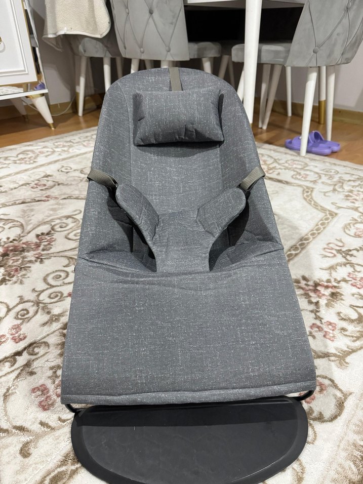 Ayarlanabilir kayışlara ve yastıklı desteğe sahip gri bebek taşıma koltuğu, rahat ve güvenli kullanım sağlar. Yumuşak kumaş bebeğiniz için konforludur.