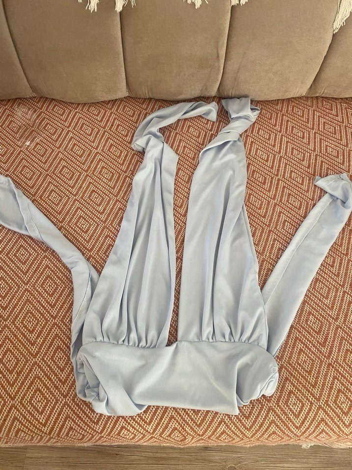 Yumuşak gri kumaştan yapılmış, bebeğin rahat taşınması için uzun bağlama ipleri olan bebek taşıma slingidir.