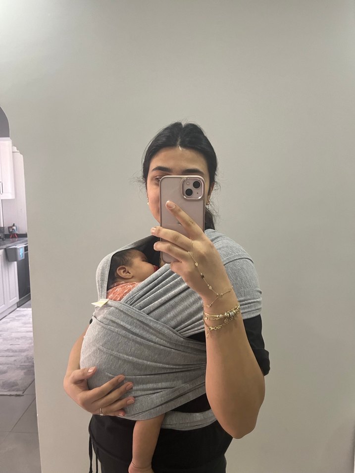 Gri renkli bebek taşıma slingi, bebeğinizi rahat ve güvenli şekilde taşımanıza olanak sağlar. Yumuşak kumaşı ebeveyn ve bebek için nazik destek sunar. Evin içinde yada uyumayan bebekler için çok iyi ben çok az kullandım kanguru kullandığımm için ama ikiside gerekli gerçekten benimki fotoğraftaki marka