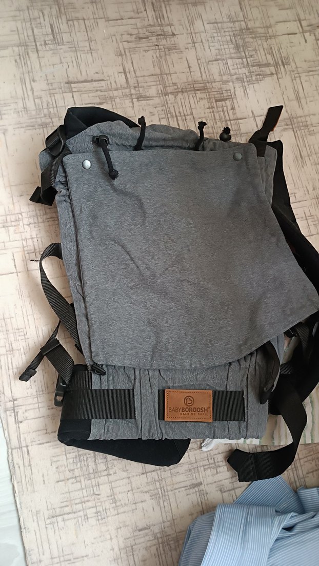 Ayarlanabilir kayışlara sahip gri bebek taşıyıcı, hem bebek hem ebeveyn için konforlu yumuşak kumaştan üretilmiştir. babybroosh marka #babybroosh