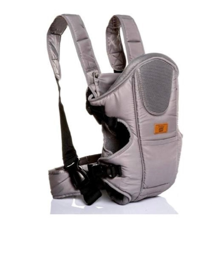 Gri bebek taşıyıcı, rahat taşıma için dolgulu askılar ve güvenli tokalar içerir. Kullanımı kolay ve destek sağlar. Hiç kullanmadım oğlum için almıştım kullanamadım