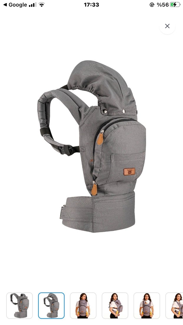 Gri renkli, yumuşak dolgulu askıları ve ön cepli bebek taşıyıcı kanguru. Rahat ve ayarlanabilir yapısıyla güvenli taşıma sağlar. Hiç kullanılmadı. Bel desteği sayesinde yormuyor insanı