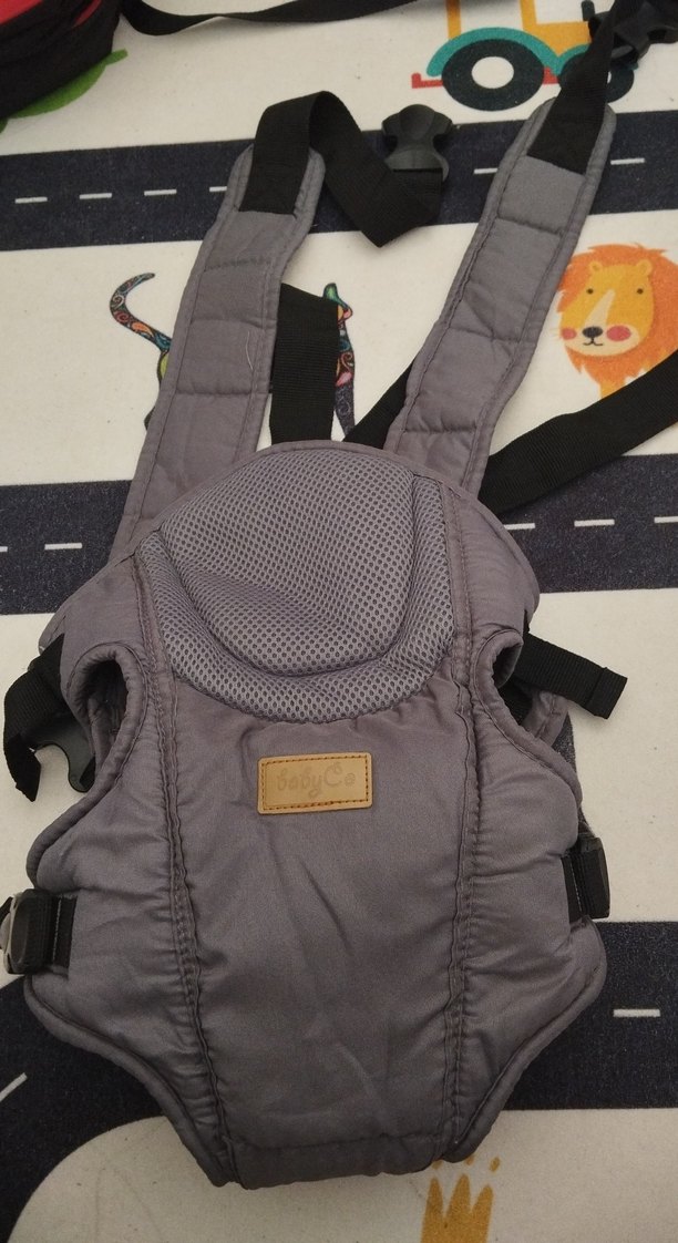 Gri bebek taşıyıcı, konfor için dolgulu askılar ve nefes alabilir file panel içerir. Ayarlanabilir tokalarla güvenli kullanım sağlar. Hiç kullanılmadı bebeğime küçük geldiği için bi defa bile kullanamadım