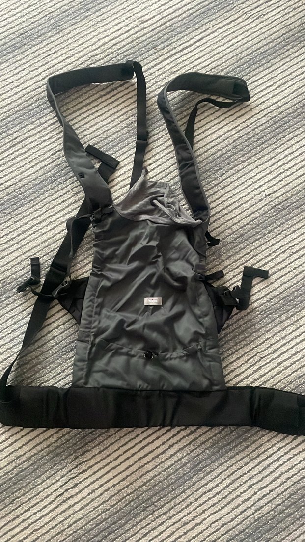 Gri renkte bebek taşıyıcı, ayarlanabilir kayışlar ve destekleyici bel kemeri ile rahat taşıma sağlar. Dayanıklı kumaştan üretilmiştir. İki kez kullanılmıştır