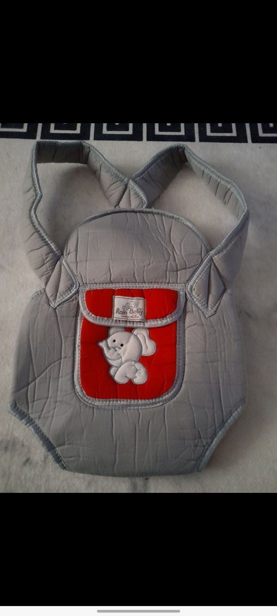 Gri renkli, yumuşak dolgulu askılara ve önünde sevimli fil desenli cep bulunan bebek taşıyıcı kanguru. Rahat ve güvenlidir.