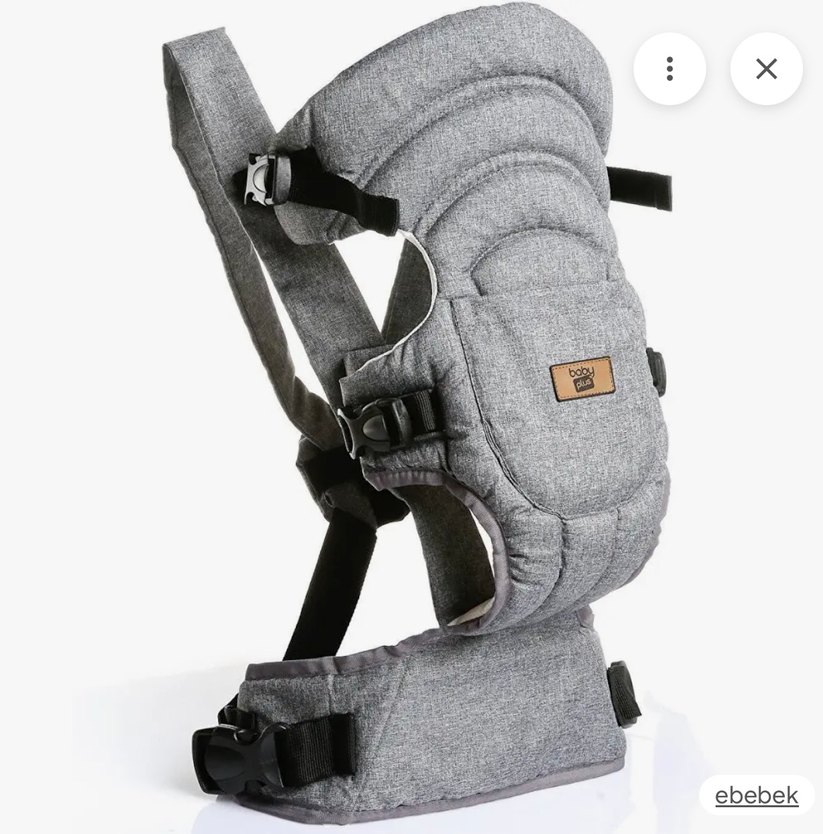 Gri renkli bu bebek taşıyıcı, konfor ve güvenlik için yastıklı askılar ve ayarlanabilir tokalar içerir. Yumuşak kumaş oturak ve sırt desteği ile bebeği güvenle taşır.