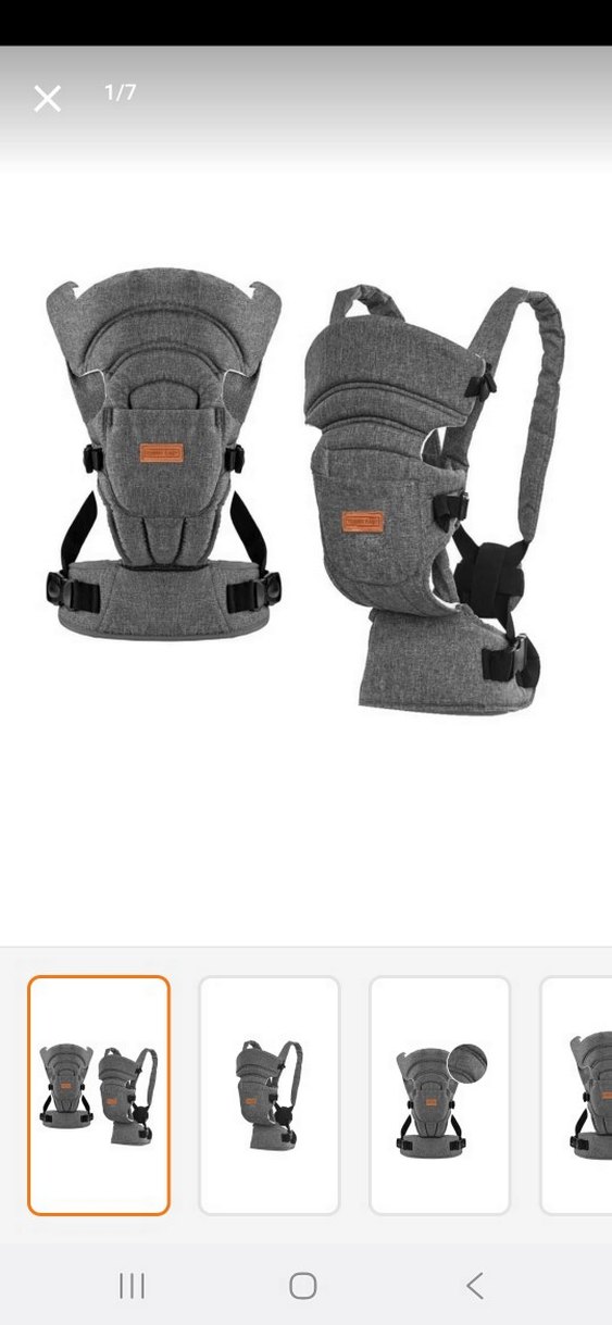 Ayarlanabilir tokalar ve destekli bel kemeri ile konforlu gri bebek taşıyıcı kanguru. Bebek için güvenli tutuş sağlar.