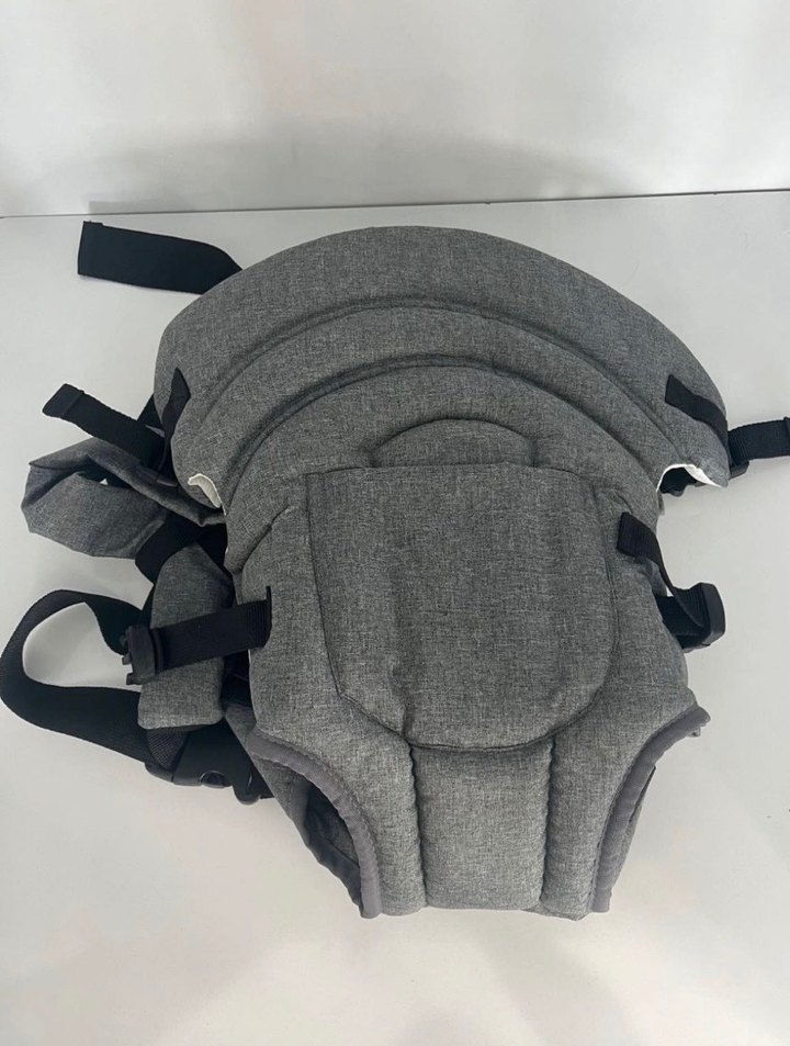 Kullanılmış Gri renkli, ayarlanabilir kayışlara ve konforlu dolgulu desteğe sahip bebek taşıyıcı kanguru. Bebeklerin güvenli taşınması için uygundur. Herhangi deformesi yoktur