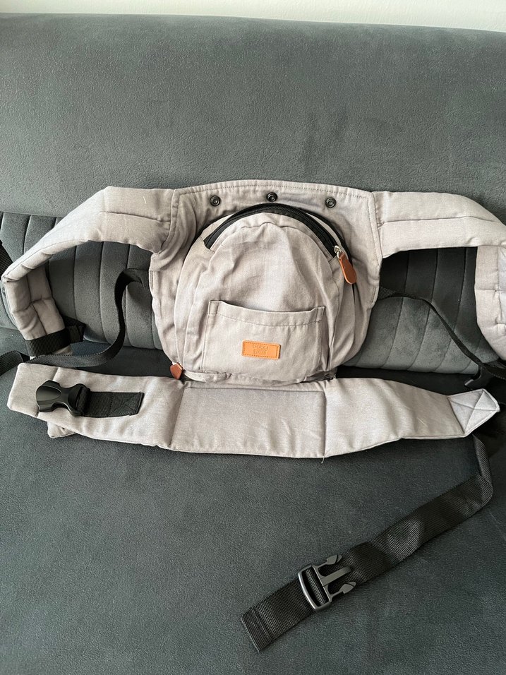Gri renkli bu bebek taşıyıcı, ayarlanabilir kayışlara ve önünde küçük bir cebe sahiptir. Bebeğinizi güvenle taşımak için rahatlık ve destek sağlar.