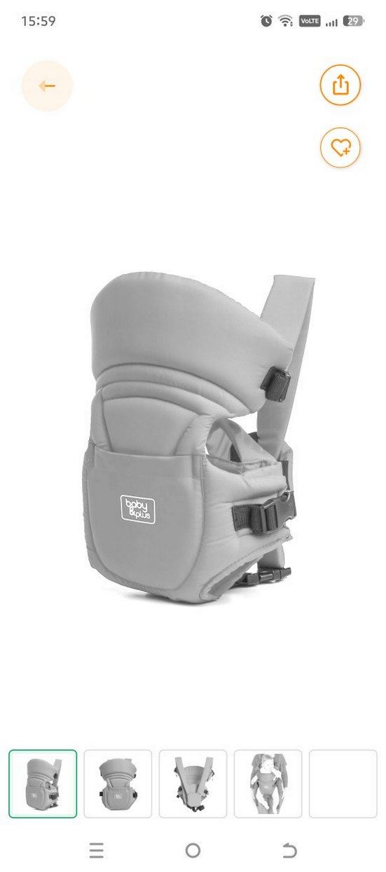 Gri renkte, ayarlanabilir kayışlara ve yumuşak desteklere sahip güvenli ve rahat bir bebek taşıyıcı kanguru.