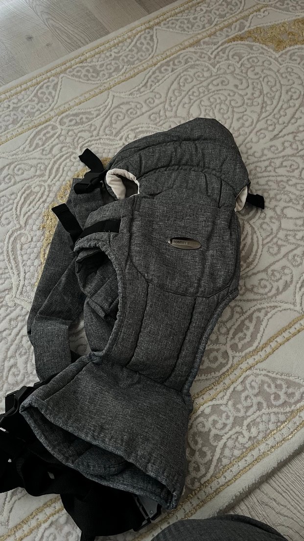 Konforlu taşıma için dolgulu askıları ve destekli yapısı olan gri bebek taşıyıcı kanguru. Güvenli ve ergonomik kullanım sağlar. Ürün çok az kullanıldır temizdir.