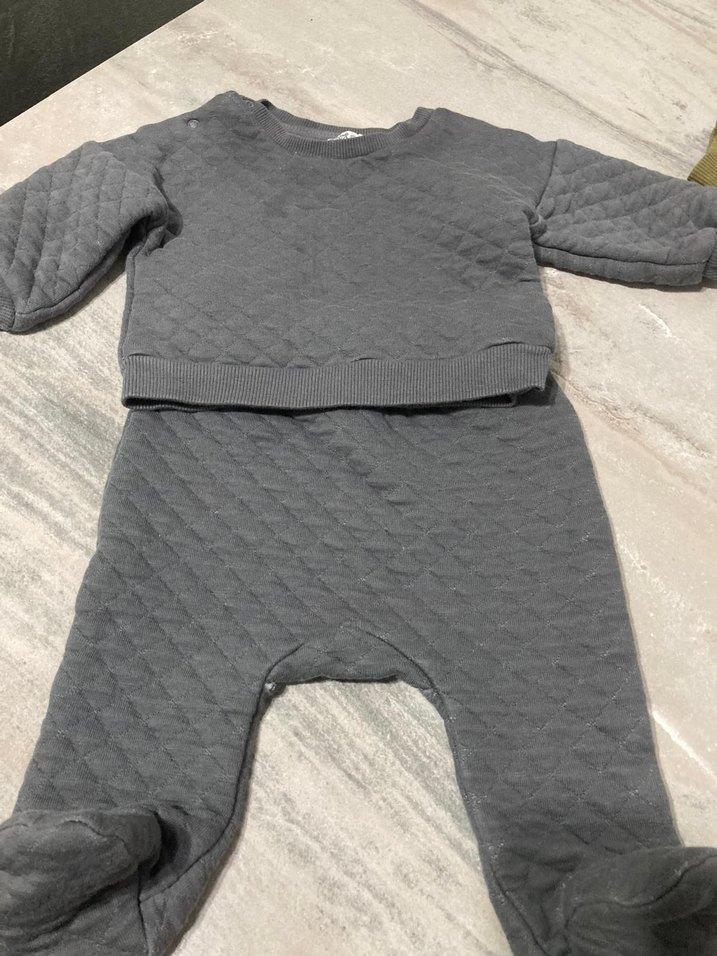 Gri renkte, uzun kollu ve bisiklet yaka, yumuşak dokulu triko bebek tulum takımı. Ayaklı alt kısmı ile rahatlık sağlar.