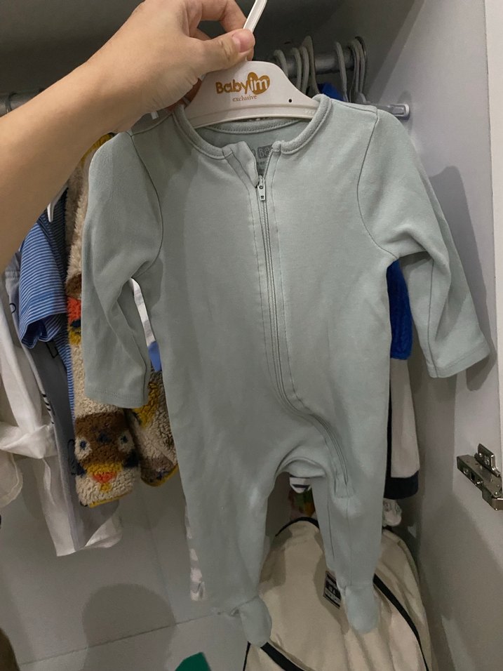 Gri renk, fermuarlı, uzun kollu ve bisiklet yaka bebek tulumu. Yumuşak ve rahat fleece kumaştan üretilmiştir. Desensiz ve "Mim" markalı.