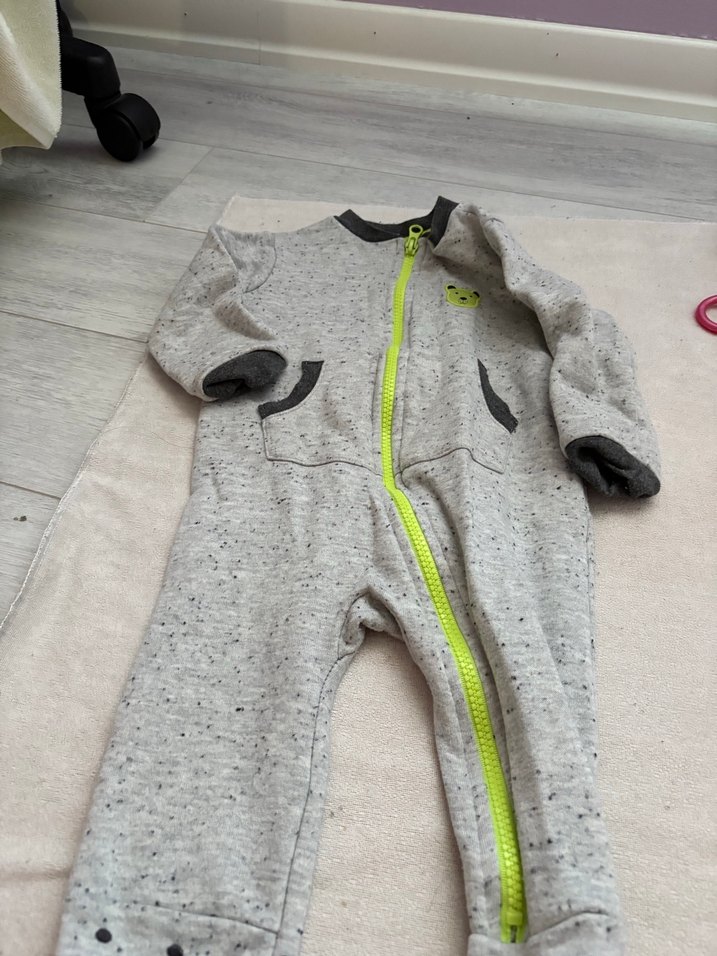 Gri renkli, uzun kollu ve bisiklet yakalı bebek tulumu, ön fermuarlı ve yumuşak dokulu kumaştan üretilmiştir. Rahat sokak stili için uygundur.