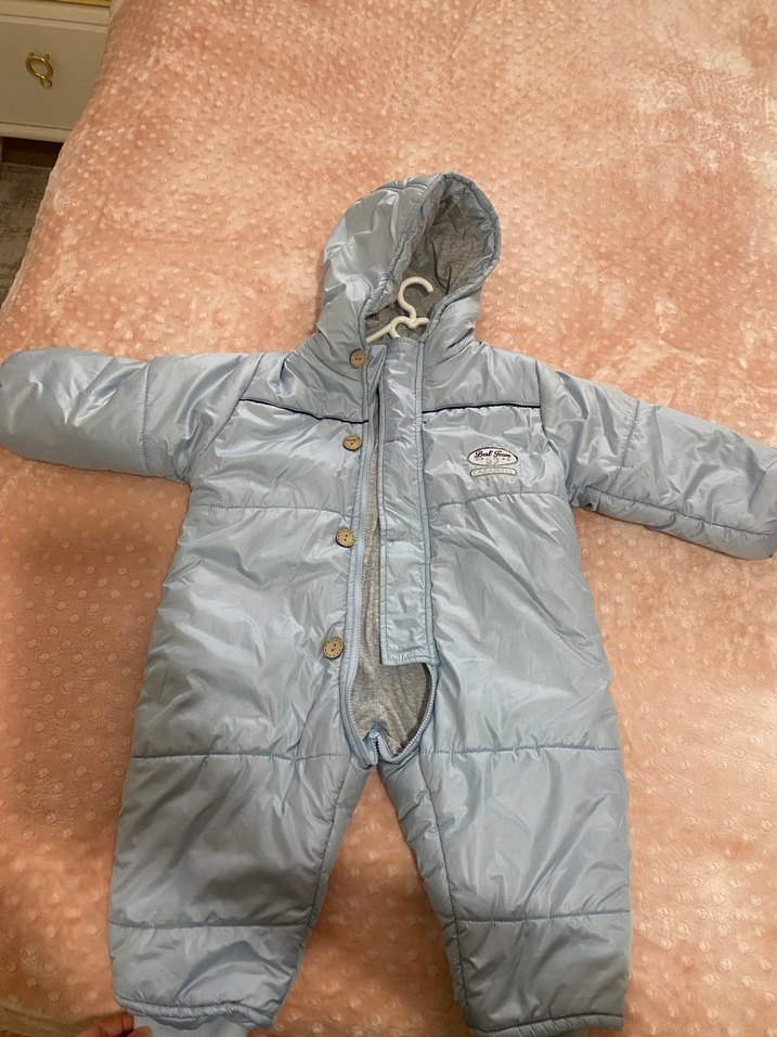 Gri renkte, kapüşonunda kürk detayı bulunan ve içi yumuşak polar kumaşla kaplanmış bebek tulumu. Desensiz ve sokak stilinde tasarlanmıştır. ❄️