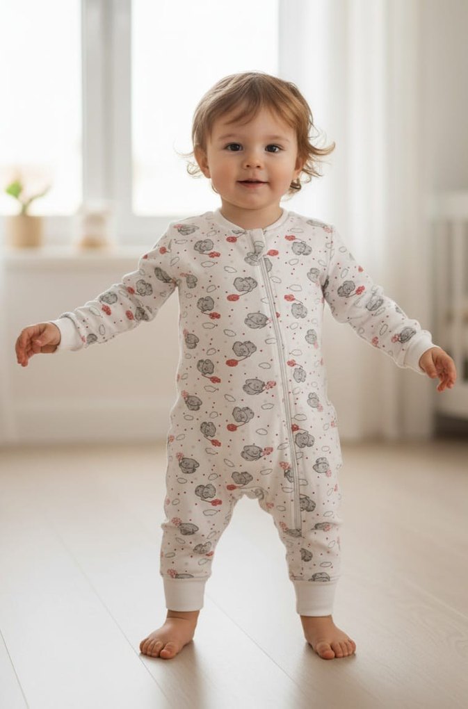 Gri renkli bebek uyku tulumu, yumuşak ve sıcak kumaştan üretilmiştir. Önünde kolay giydirme için fermuar bulunur. Desensiz sade tasarımlıdır. 1-2-3 yaş