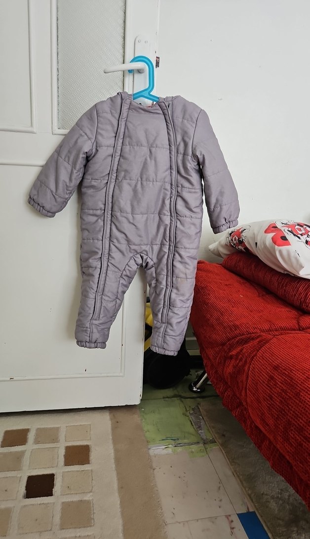 Gri renkte, yumuşak ve sıcak tutan kumaştan yapılmış bebek tulumu, Velcro kapamalı ve rahat sokak stili tasarıma sahiptir. ❄️ İçi polar şapkası lastik detaylı ve figürlü.