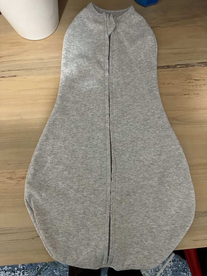 Yumuşak kumaştan yapılmış, fermuarlı gri bebek kundak bezi, bebeğinizi rahat ve güvenli şekilde uyumasını sağlar.