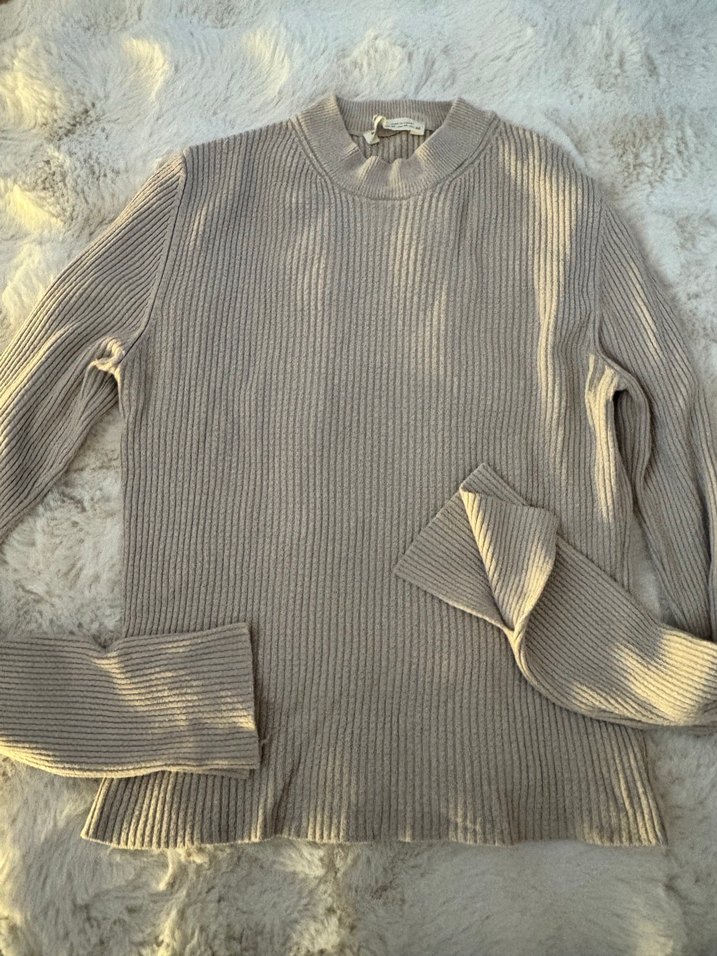 Gri renkli, uzun kollu ve boğazlı örgü kazak, rahat ve sade tarzıyla günlük kullanım için uygundur.