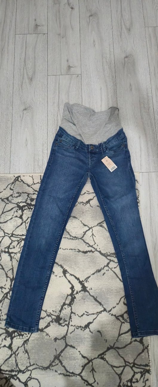 Gri destekli bel bandına sahip, rahat kesim hamile kot pantolon. Dayanıklı denimden yapılmış, günlük kullanım için uygun rahat bir model.Etikette görüldüğü üzere EUR 38 (Türkiye'de 38 bedene tekabül eder). (Vücuda oturan dar kesim). Göbek kısmındaki gri penye parça, hamilelik döneminde konfor ve destek sağlar.