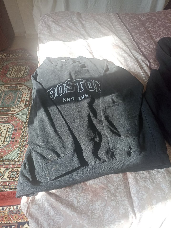 Gri renkli, bol kesim ve uzun kollu sweatshirt, bisiklet yaka ve bel detayına sahiptir. "BOSTON, EST.195" baskılı, yumuşak ve sıcak tutan kumaştan üretilmiştir.