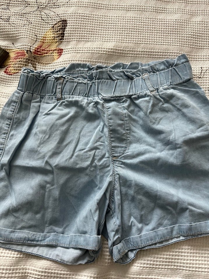 Gri kot kumaştan, kemerli bel detaylı, bol kesim kısa kız çocuk şortu, günlük rahat kullanım için uygundur.