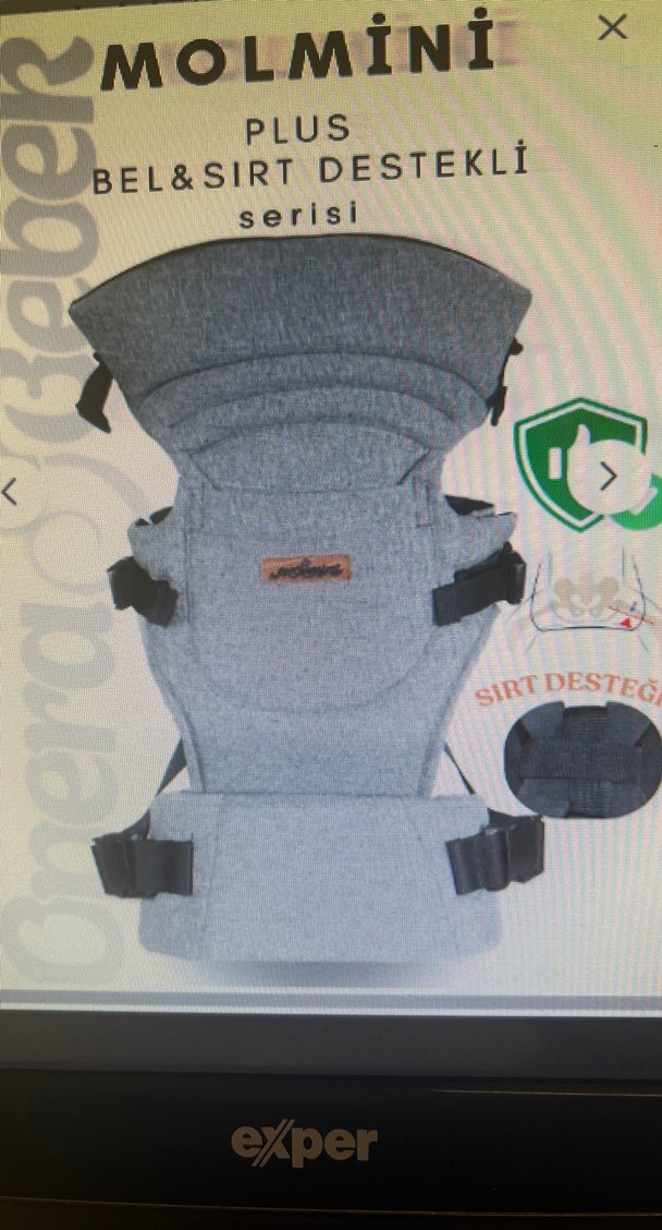 Gri renkte, bel ve sırt destekli ayarlanabilir bebek taşıyıcı. Rahat ve güvenli kullanım sağlar.
