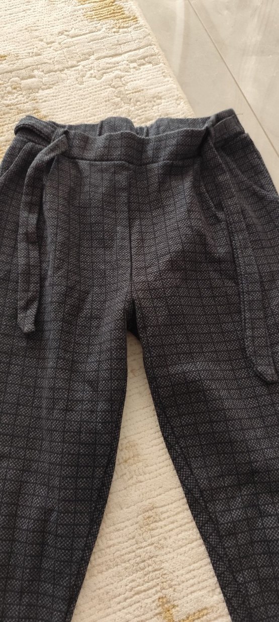 Gri renkli, regular fit kesim ve kuşaklı beli olan kadın kumaş pantolon. Midi boy, hafif kareli desene sahip, rahat sentetik kumaştan üretilmiş günlük kullanıma uygun pantolon.