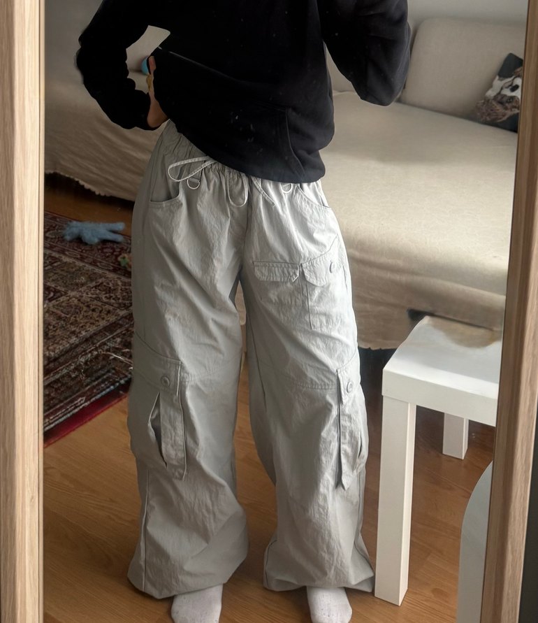 Gri Bershka Bol Kesim Kemerli Kadın Pantolon