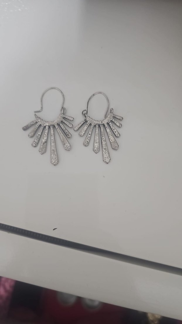 Gri renkli, beş dokulu çubuğun sallandığı midi uzunlukta soyut tasarımlı küpelerdir, günlük kullanım için uygundur.