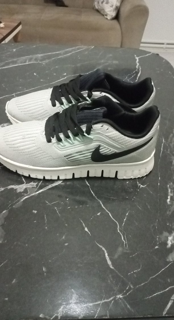 Gri ve beyaz renklerde, kauçuk tabanlı, bağcıklı erkek spor ayakkabısı. Sokak stiline uygun, trend görünümlü ve spor için ideal.