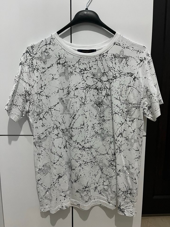 Gri Beyaz Batik Desenli Kısa Kollu Tişört