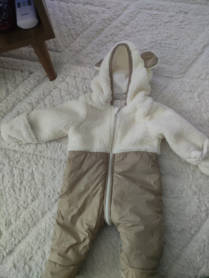 Beyaz ve gri tonlarında, kapüşonunda peluş detayları olan yumuşak ve sıcak kumaştan bebek tulumu. Sokak stili görünümüyle rahatlık sağlar. ❄️ hediye olarak geldi kızıma şu an tam olduğu için satıyorum sadece 30 derece 28 dakikada yıkandı hiç giyilmedi yeni alındı. soğuması daha çok var giyemeden dolabında kalacak bu yüzden satıyorum.