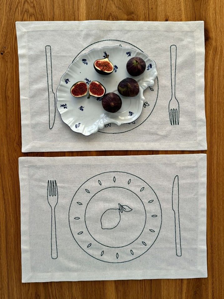 Gri ve beyaz renklerde, tabak ve çatal bıçak desenli, masa düzenine sade bir dokunuş katan Amerikan servisler. ️ ikili fiyatıdır
