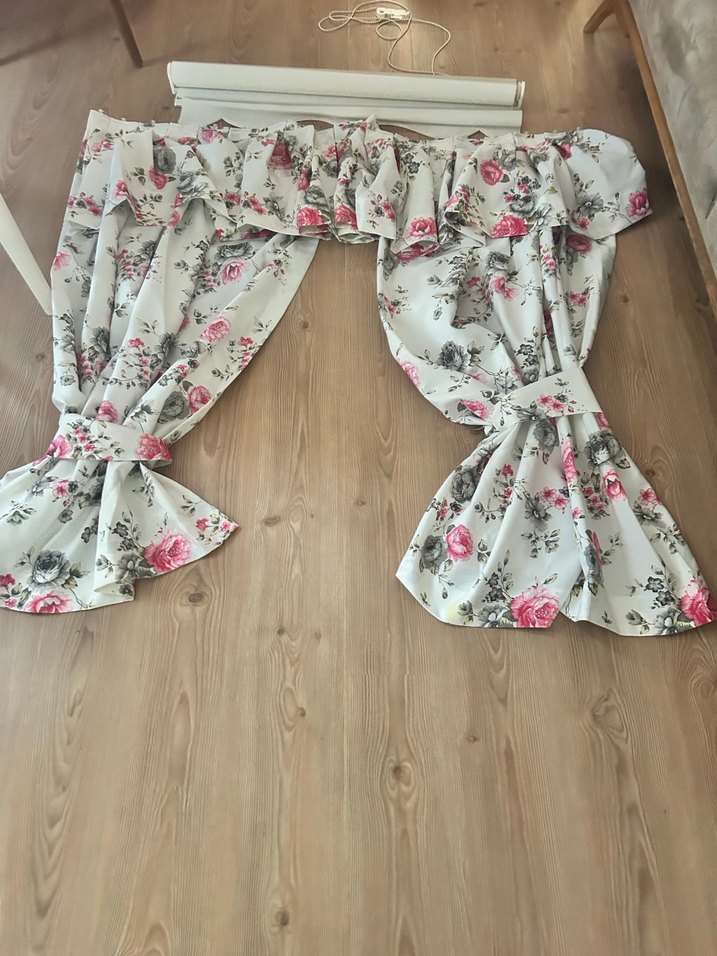 Gri-Beyaz Çiçek Desenli Perde ve stor 150 ye 150 stor 100 e 220