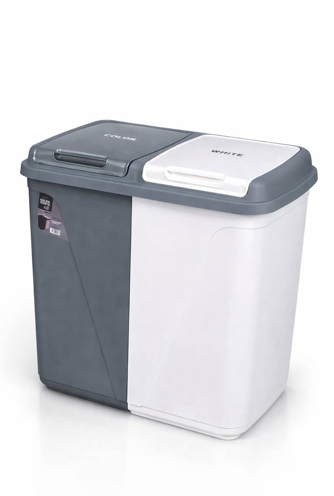 Gri Beyaz Çift Bölmeli Kirli Sepeti 90 litre