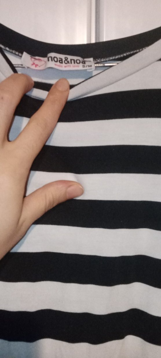 Beyaz ve gri çizgilerden oluşan uzun yan yırtmacı elbıse