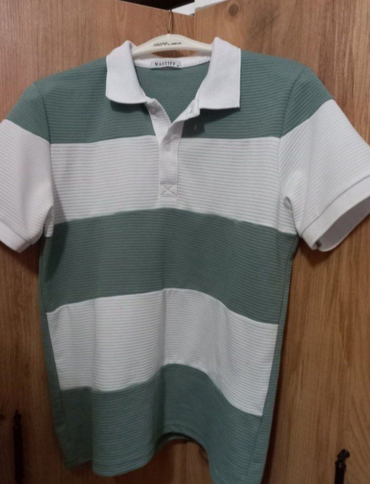Geniş gri ve beyaz yatay çizgilerle tasarlanmış, kısa kollu ve yakalı, pilili dokulu regular fit erkek polo tişört. Günlük rahat kullanıma uygundur.