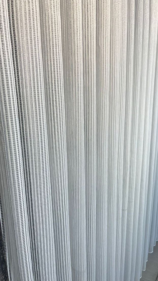 Gri ve beyaz çizgili modern perde, mekana hafif ve ferah bir dokunuş katar. İnce desenli yapısıyla çağdaş tasarıma uygundur. metre fiyatıdır