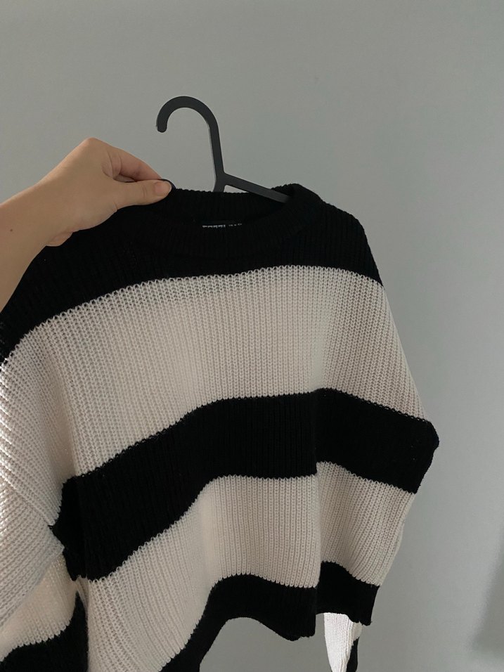 Gri Beyaz Çizgili Örgü Kadın Kazak