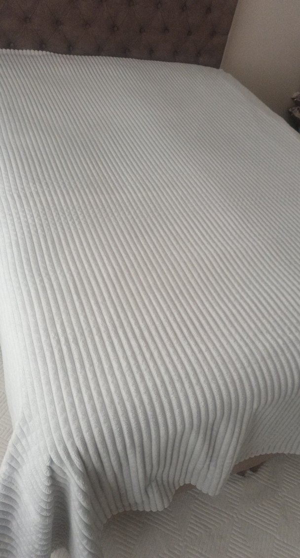 Bu yatak örtüsü, yumuşak dokusu ve gri beyaz çizgileriyle odanıza sade ve temiz bir görünüm sağlar. ️